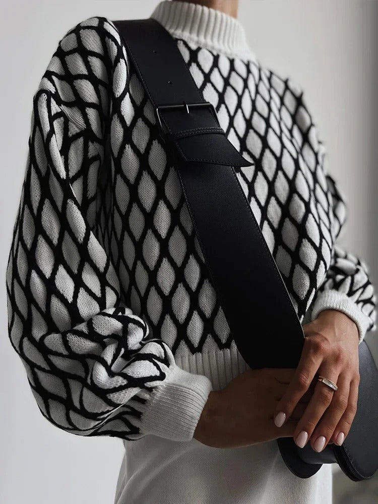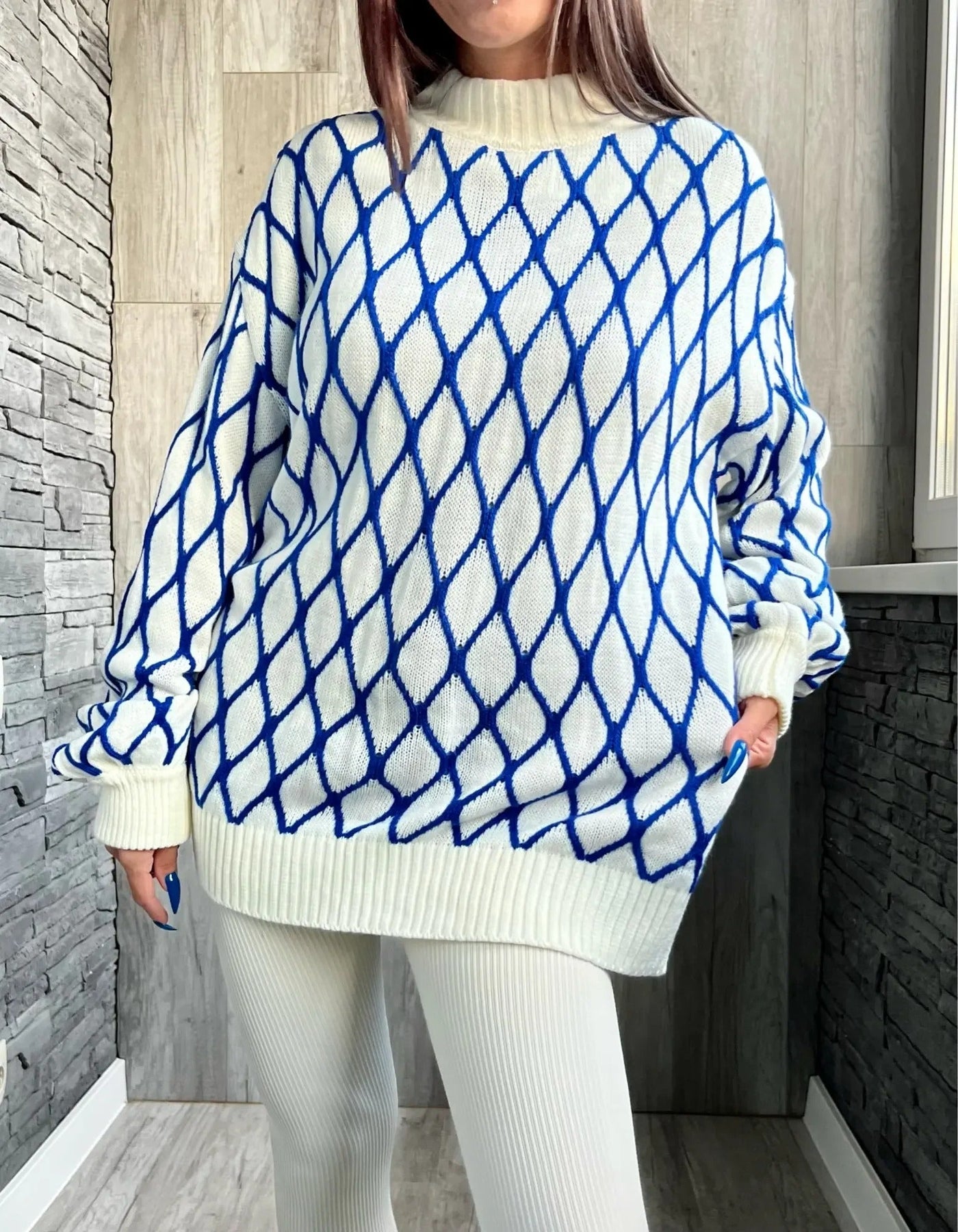 Hülle dich in Charme mit unserem Rhomb Green Sweater, einem lebhaften, übergroßen Karo-Pullover, der für die Herbst- und Wintersaison konzipiert wurde. Der weiche, warme Stoff und der halbhohe Rollkragen sorgen für gemütlichen Komfort und verleihen zugleich eine spielerische Eleganz. Erlebe die Vibes der Saison mit diesem unvergesslichen gestrickten Oberteil, das Stil und Wärme mühelos vereint.