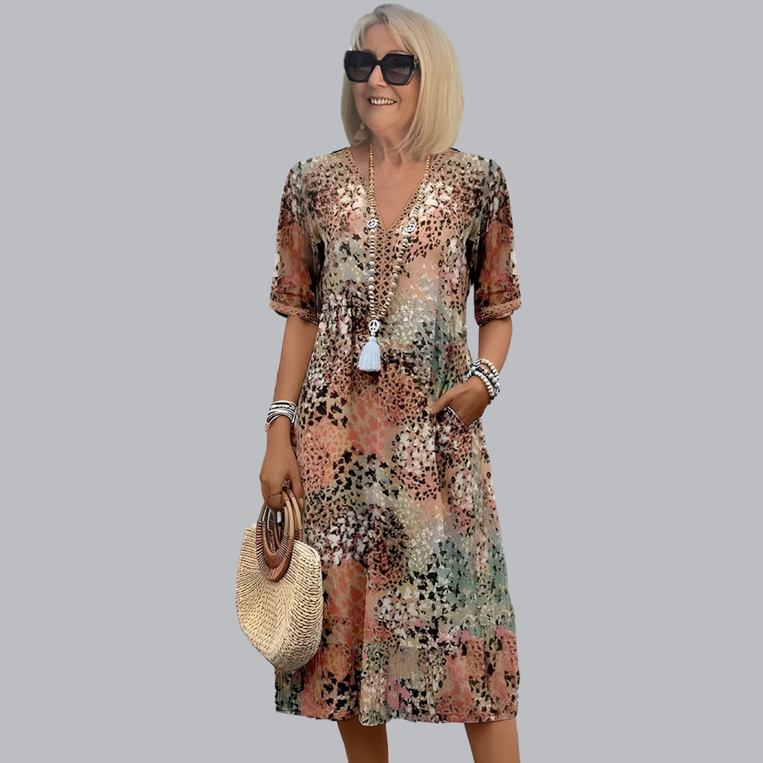 Sabine™ | Elegantes Midikleid mit lebendigem Design