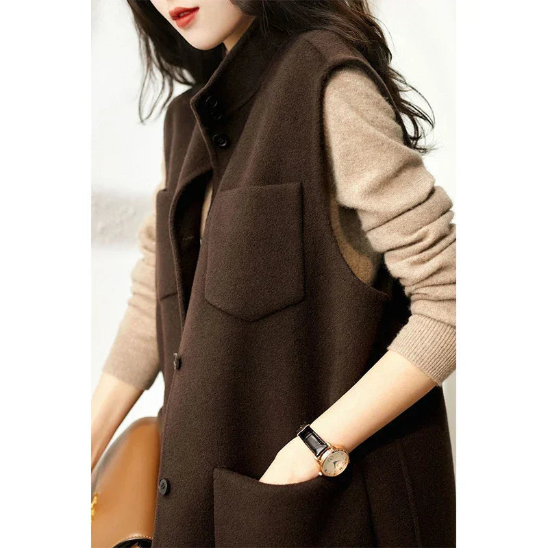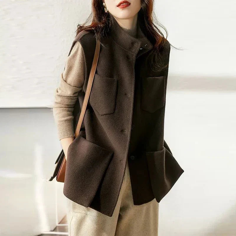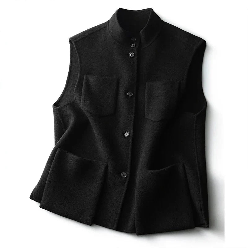 Verbessern Sie Ihre Garderobe mit unserem "Chic Pocket Gilet". Diese ärmellose Wollweste geht über Stil hinaus; sie ist eine Aussage von Komfort und Vielseitigkeit. Gefertigt, um weich und bequem zu sein, ist sie die ideale Wahl, um sich nahtlos an jedes Outfit anzupassen und Ihrem Look eine Portion Raffinesse zu verleihen.