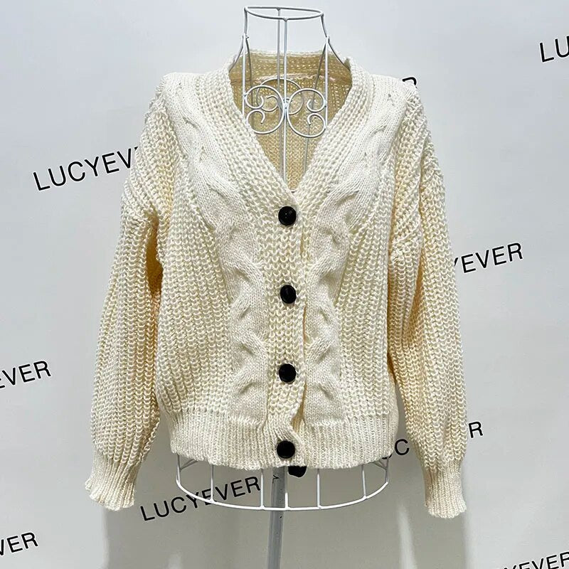 Tauchen Sie ein in die Welt von Mode und Komfort mit unserem Twisted Knitted Cardigan. Dies ist nicht einfach nur ein Cardigan; es ist Ihr Ticket zur Perfektion des lässigen Stils. Entworfen für Wärme und Gemütlichkeit, ist dieser einreihige Strickmantel ein Muss für die Wintersaison.