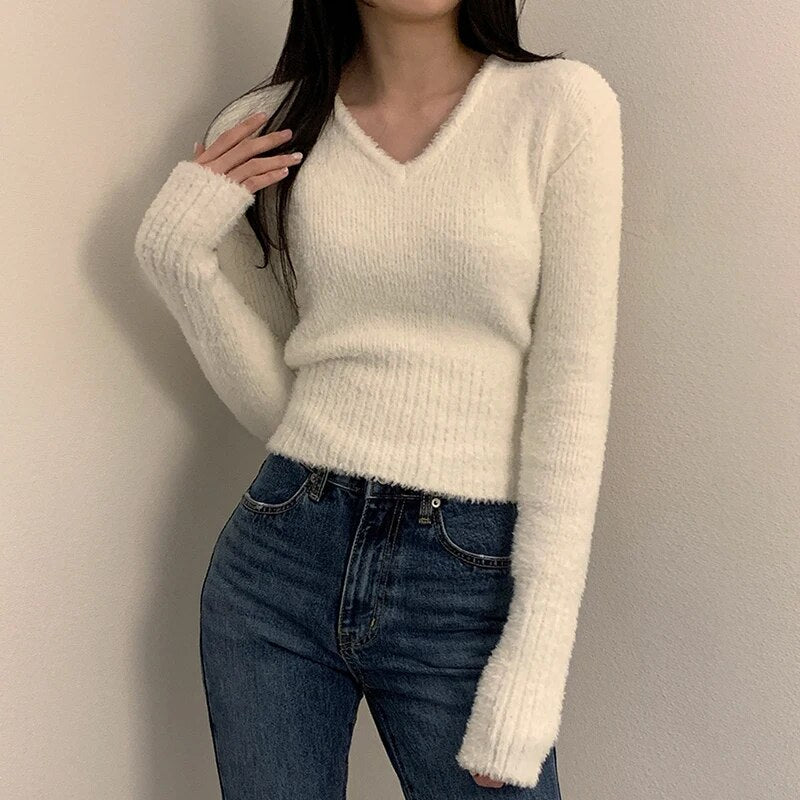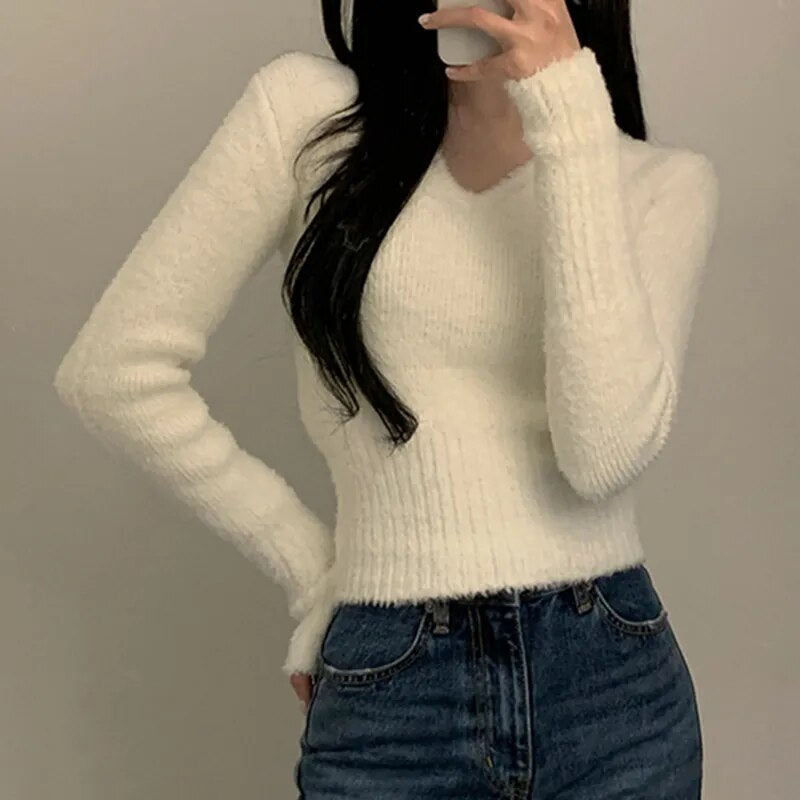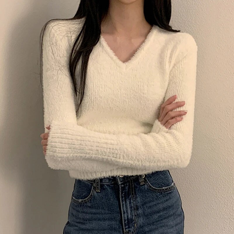 Sind Sie bereit, Aufmerksamkeit zu erregen und gleichzeitig kuschelig warm zu bleiben? Das Weiße V-Ausschnitt Soft Feel Top ist Ihre trendige Lösung für den Herbst und Winter. Verabschieden Sie sich von Langeweile und begrüßen Sie den Charme und den Stil dieses atemberaubenden Crop-Tops. Greifen Sie jetzt zu und tauchen Sie ein in die Welt von Wärme und Mode!