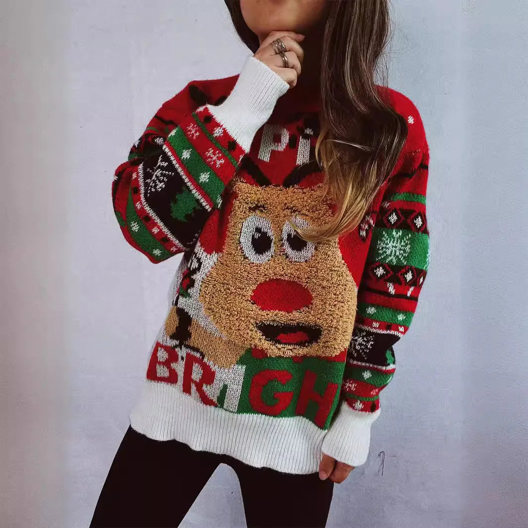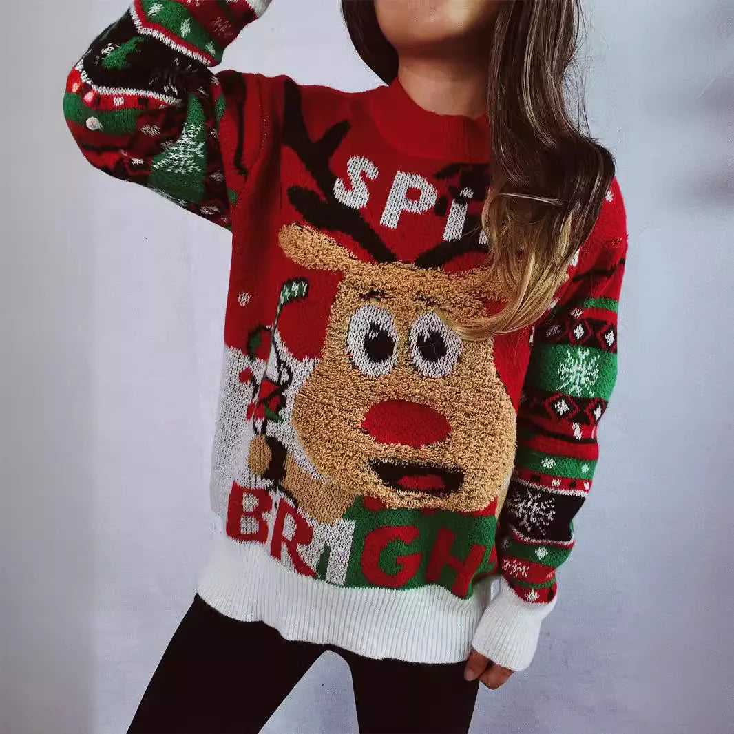 Bele- Weihnachtspullover mit Rundhals und Cartoon-Design