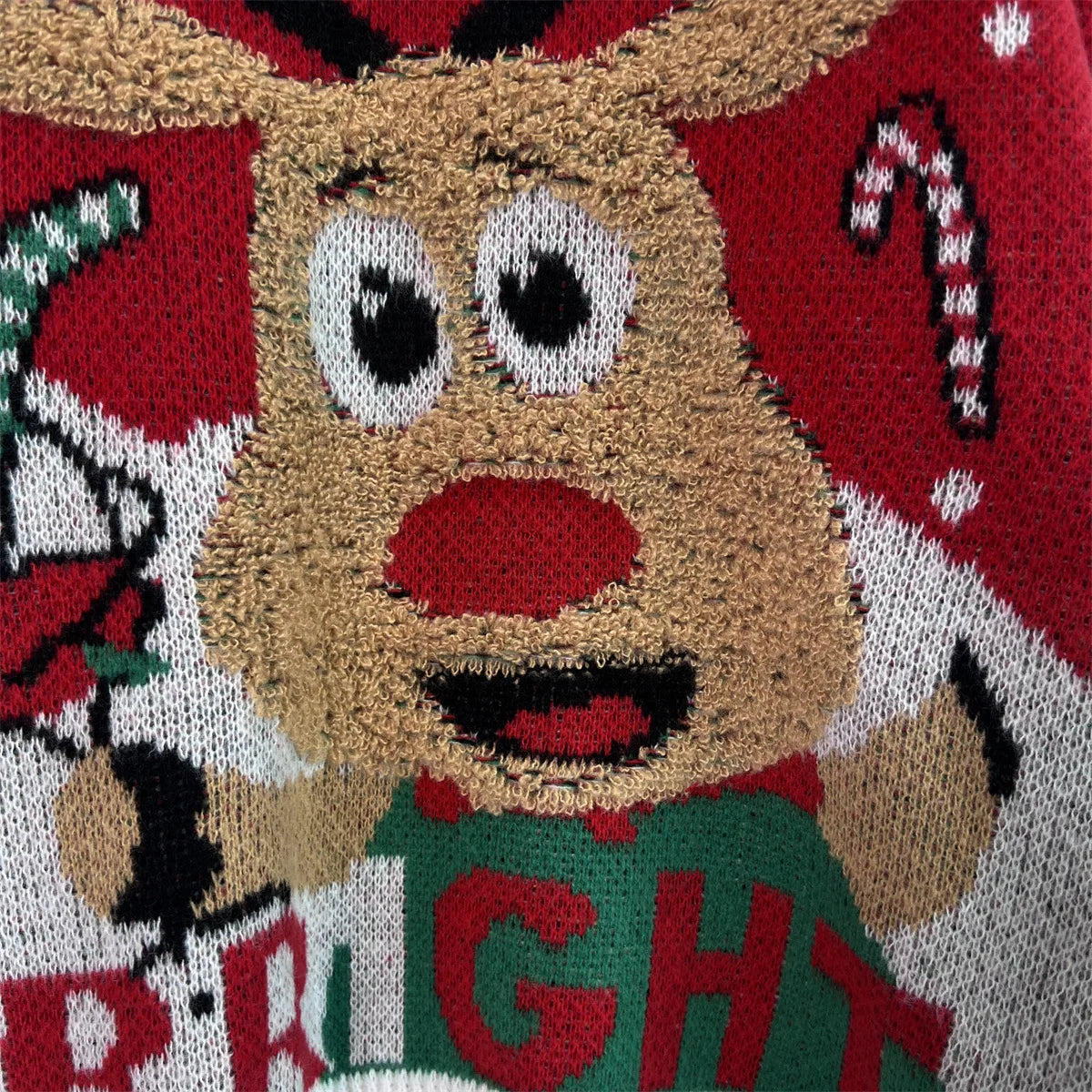 Erleben Sie den festlichen Zauber der Weihnachtszeit mit diesem charmanten Pullover. Der Rundhalsausschnitt sorgt für einen klassischen Look, während das verspielte Cartoon-Design eine fröhliche Note hinzufügt. Perfekt, um während der Feiertage gemütlich und stilvoll zu bleiben. Ideal für weihnachtliche Anlässe, gemütliche Winterabende oder als Geschenk für einen besonderen Menschen. Genießen Sie die kalte Jahreszeit in einem Pullover, der Wärme und gute Laune verbreitet.
