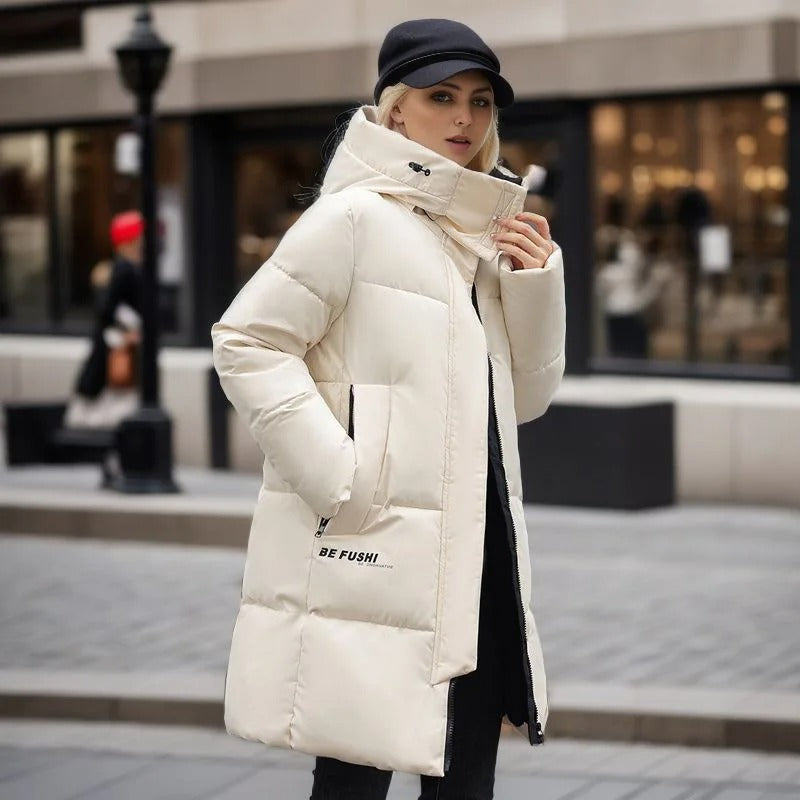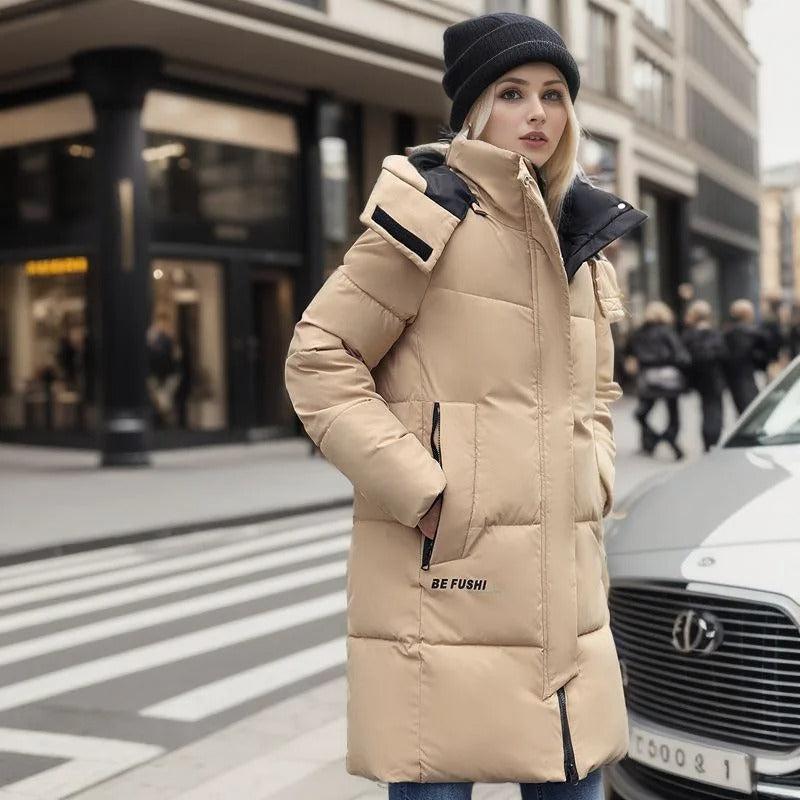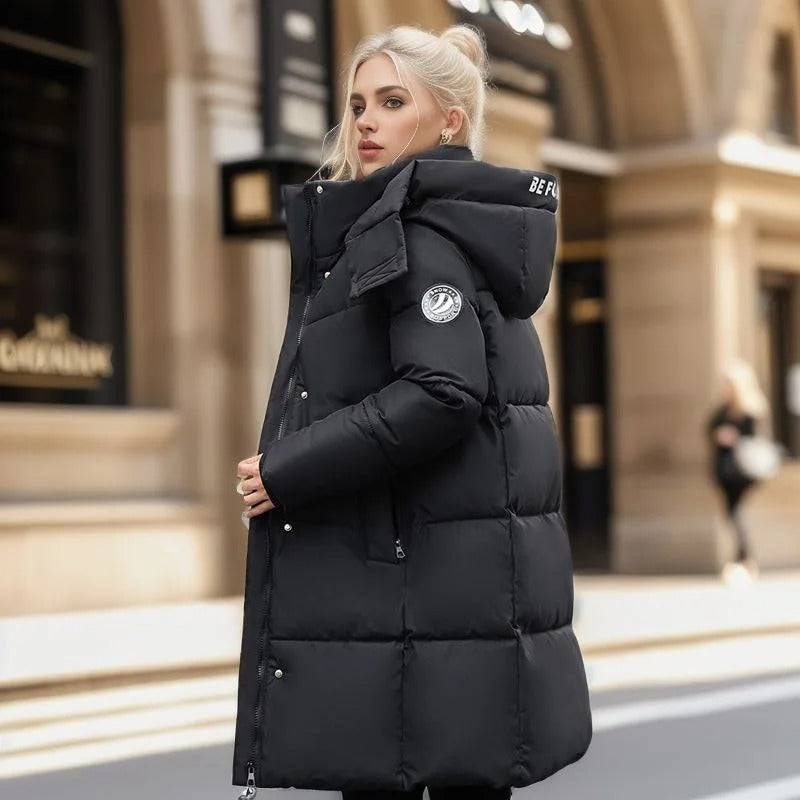Der Helena Daunenmantel ist die perfekte Wahl für kalte Wintertage. Mit seinem langen Schnitt und der isolierenden Füllung bietet er außergewöhnliche Wärme und Schutz. Das stilvolle Design mit hohem Kragen verleiht diesem Mantel eine urbane Eleganz, ideal für Frauen, die Komfort und einen modischen Look suchen.