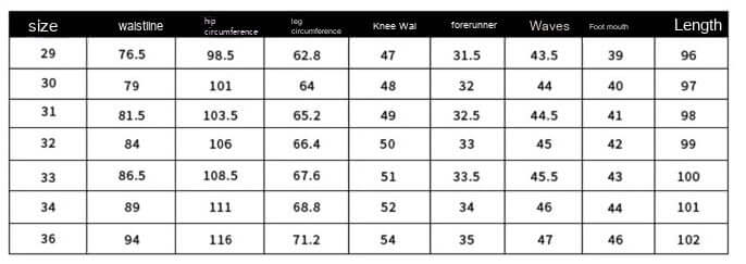 Größentabelle für Herrenhosen