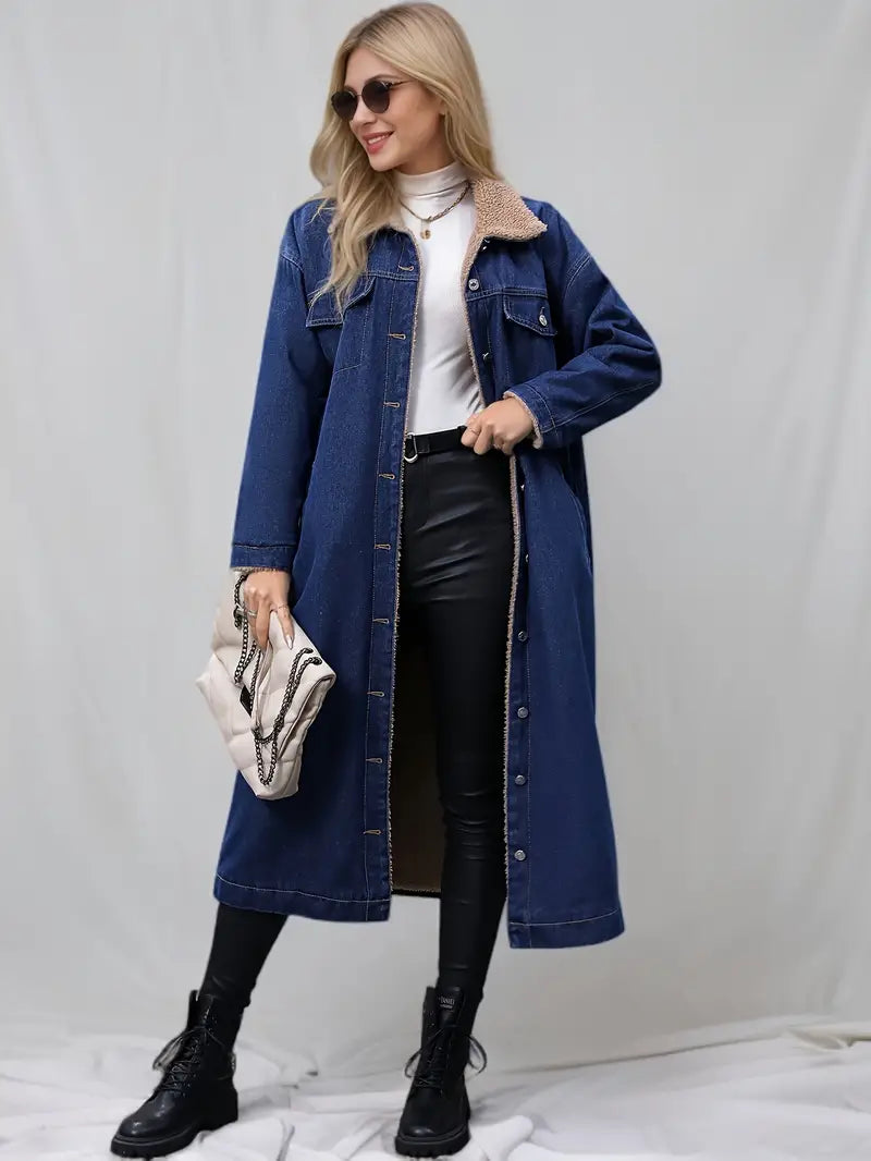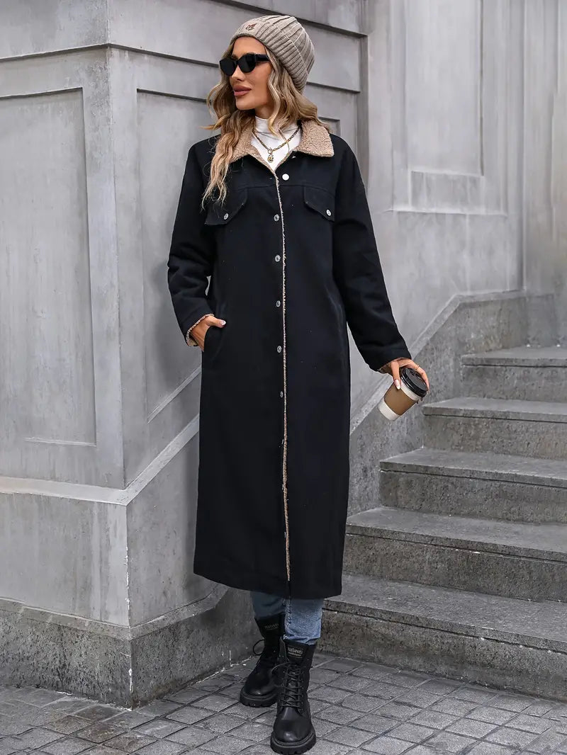 Unser langer Mantel mit Futter für Damen bietet die perfekte Kombination aus Komfort und modischem Stil. Er ist ideal für die kalte Jahreszeit und sorgt für wohlige Wärme, ohne dabei Kompromisse beim Design einzugehen. Das schlichte, vielseitige Design macht ihn zu einer großartigen Ergänzung für jede Wintergarderobe.