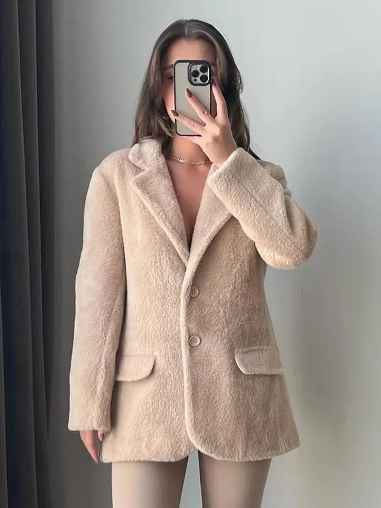Die Chic Damen Plüschjacke ist die perfekte Lösung, um Sie während der kalten Wintermonate warm und komfortabel zu halten. Mit ihrem weichen Innenfutter und dem geräumigen Design ermöglicht sie Ihnen Bewegungsfreiheit, ohne auf Stil zu verzichten. Ideal für lange Winterspaziergänge oder um es sich an kalten Tagen gemütlich zu machen.