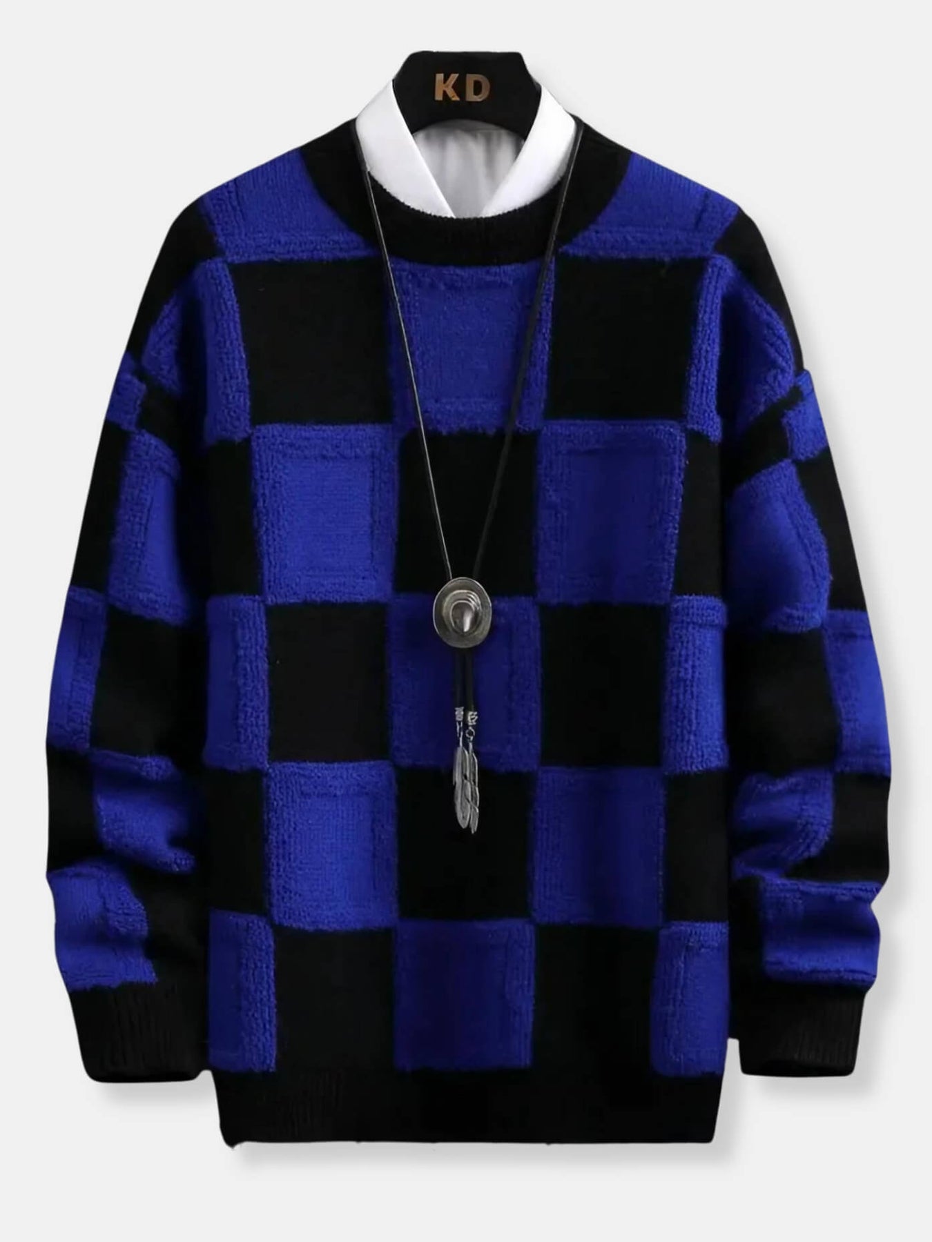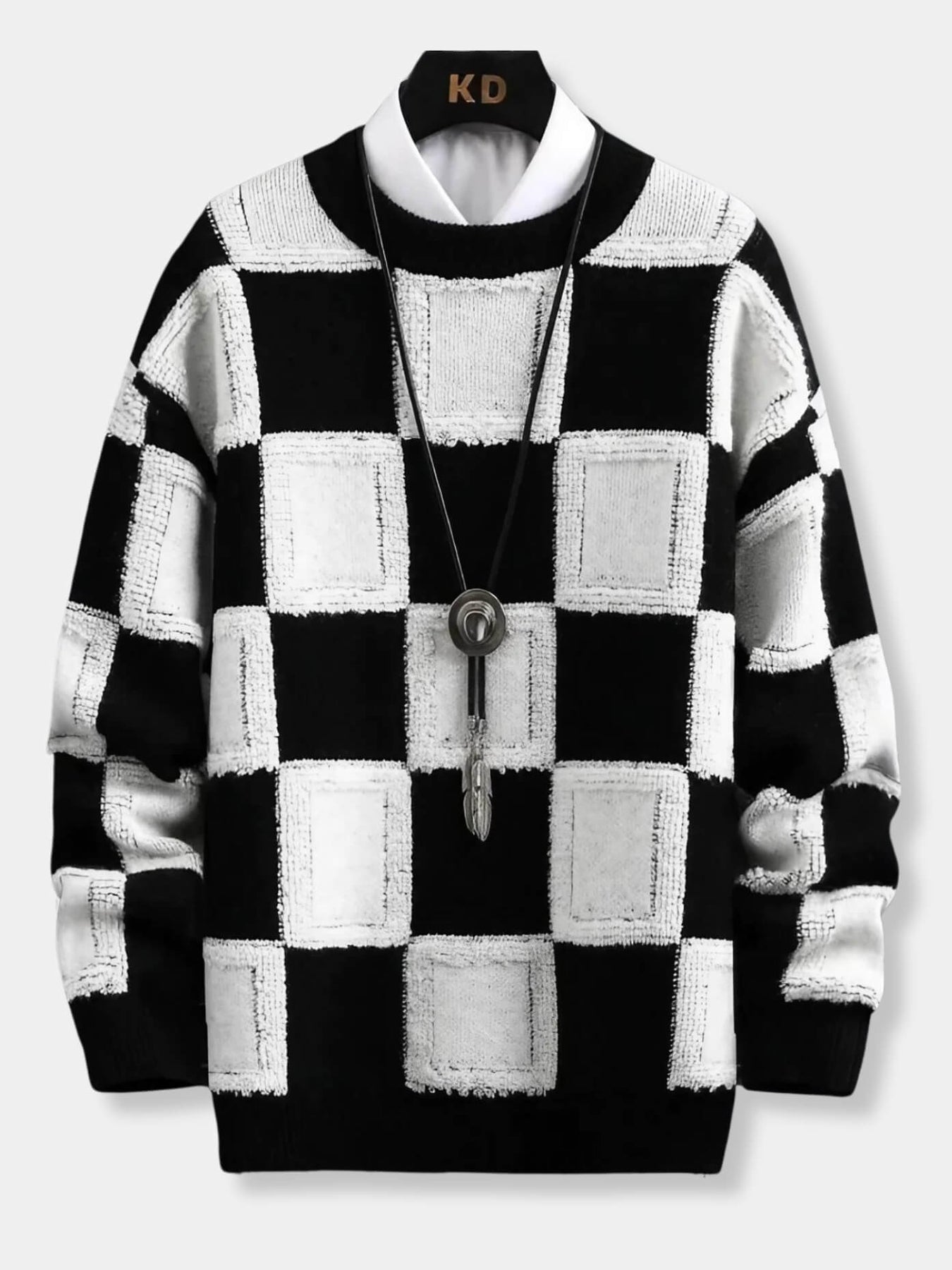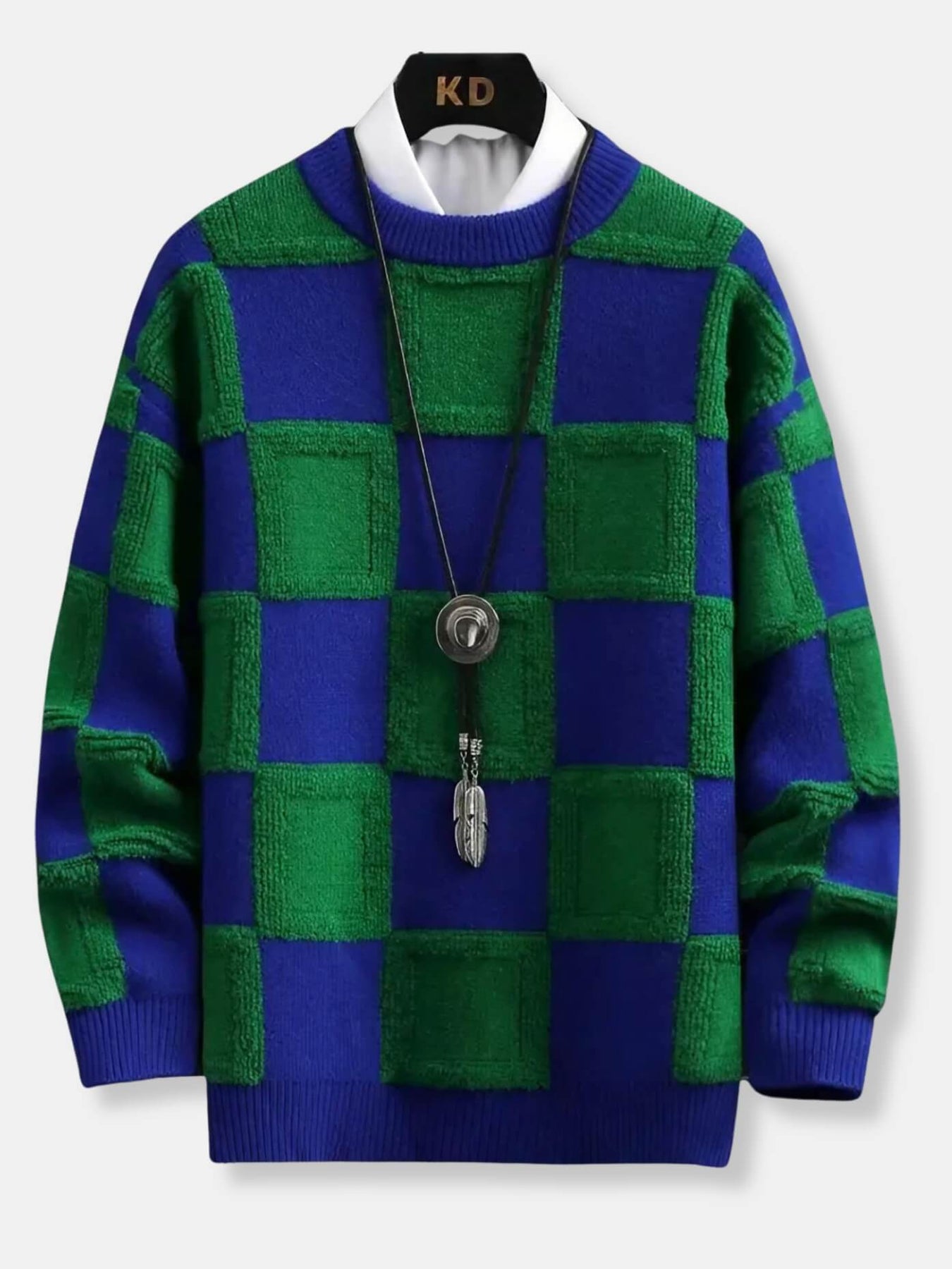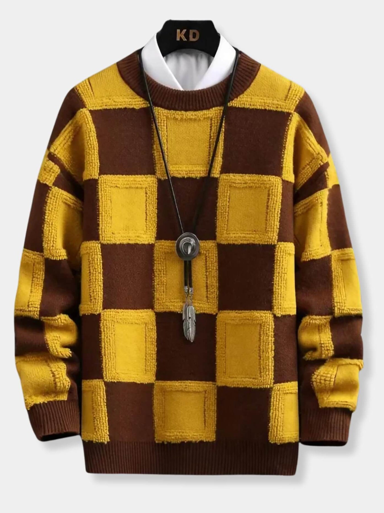 Erleben Sie den perfekten Mix aus Stil und Gemütlichkeit mit diesem modischen Karo-Winterpulli. Die hochwertige Verarbeitung und das zeitlose Design machen ihn zu einem unverzichtbaren Teil Ihrer Wintergarderobe. Ideal für den modernen Mann, der Wert auf Luxus und Entspannung legt.
