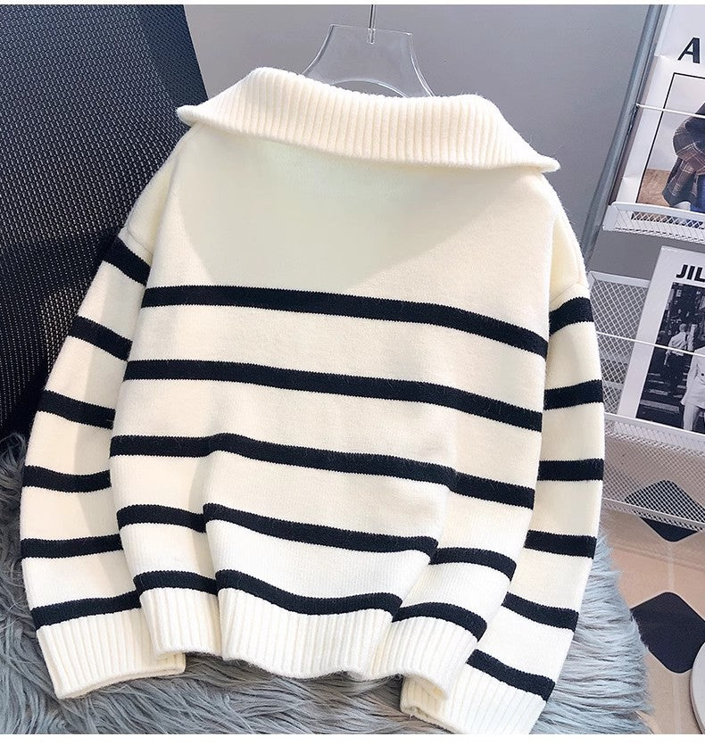 Viela | Gestreifter Strickpullover mit Reißverschluss