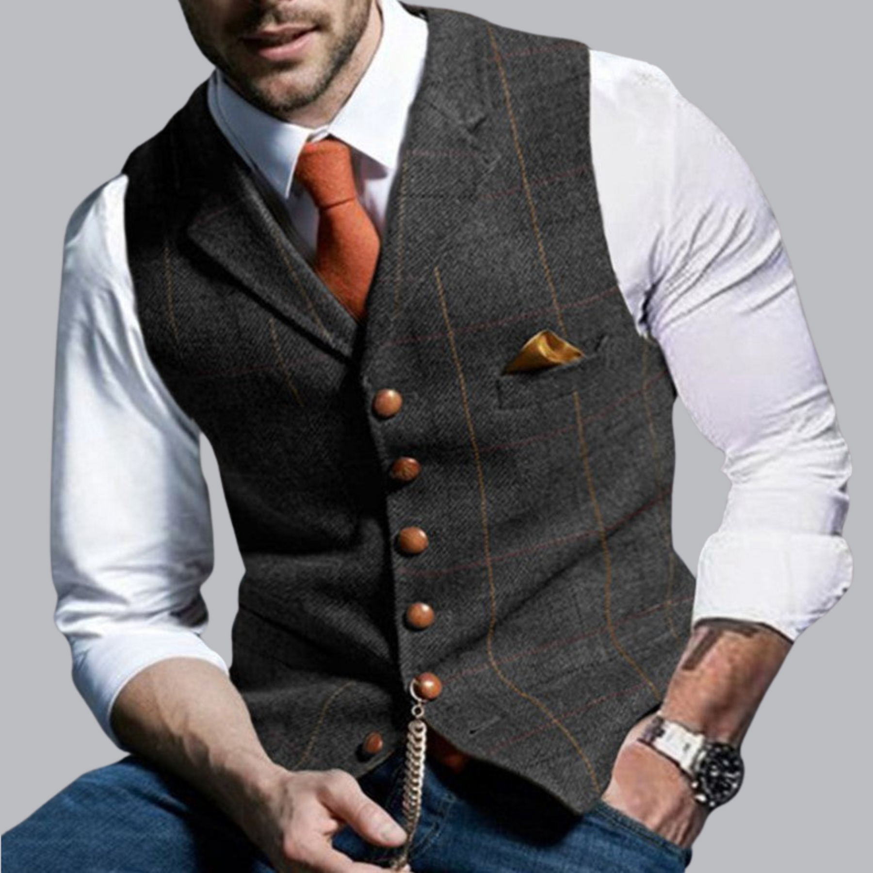 Unsere Premium Weste ist das perfekte Finish für jedes Outfit. Hergestellt aus hochwertigen Materialien, bietet sie unschlagbaren Komfort und ein raffiniertes Design. Dieser Best-Seller ist ideal für alle, die ein vielseitiges Kleidungsstück suchen, das sowohl zu formellen Anlässen als auch für den täglichen Gebrauch perfekt geeignet ist.