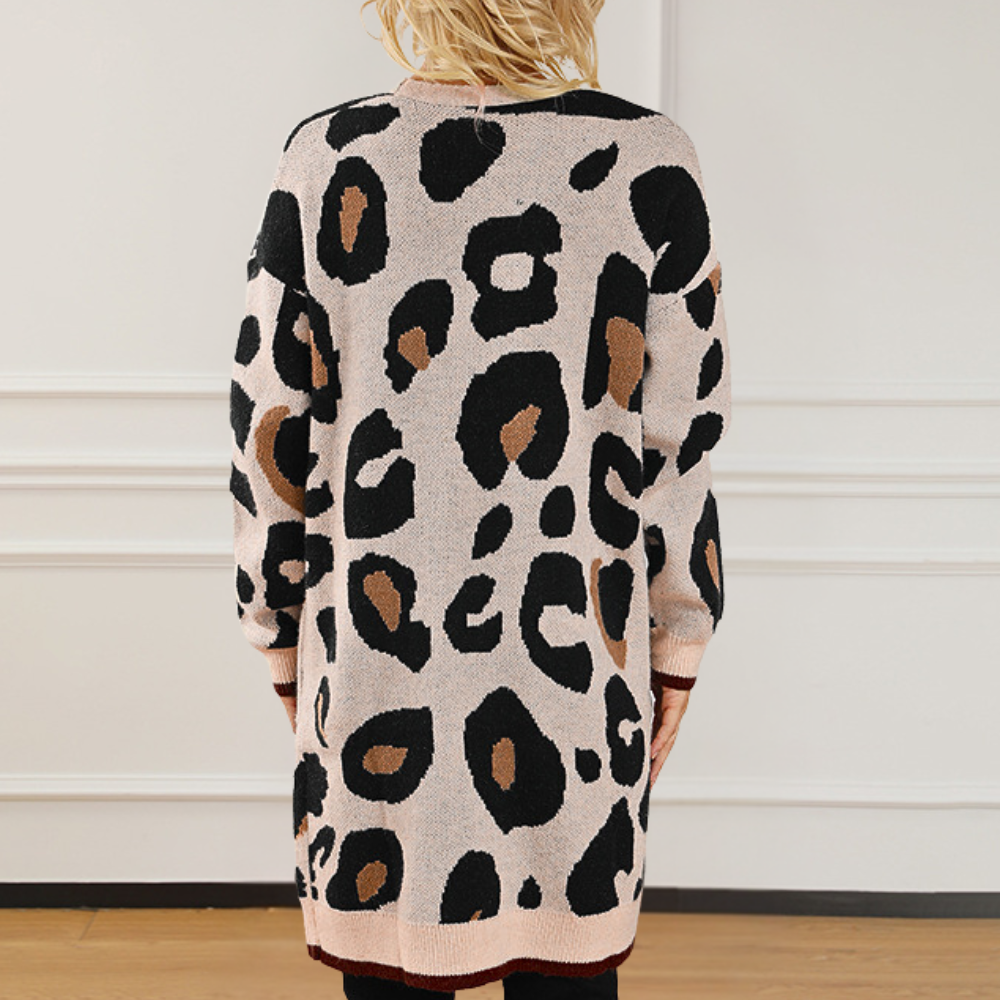 EDELINA - Stylische Damen Strickjacke mit Leopardenmuster