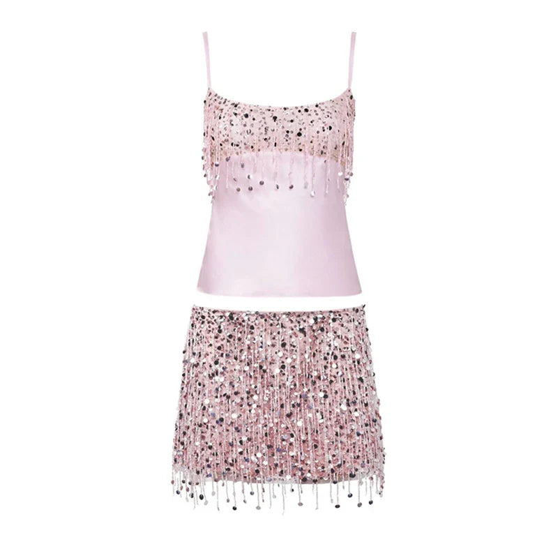 Entdecken Sie den ultimativen Sommerlook mit unserem Pailletten-Tassel Set, das perfekt für Strandtage und Festivals geeignet ist. Dieses Set kombiniert Glanz und Stil, um Ihnen ein selbstbewusstes und modisches Auftreten zu verleihen. Die funkelnden Pailletten und die verspielten Fransen sorgen für einen aufregenden Look, der alle Blicke auf sich zieht.
