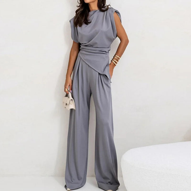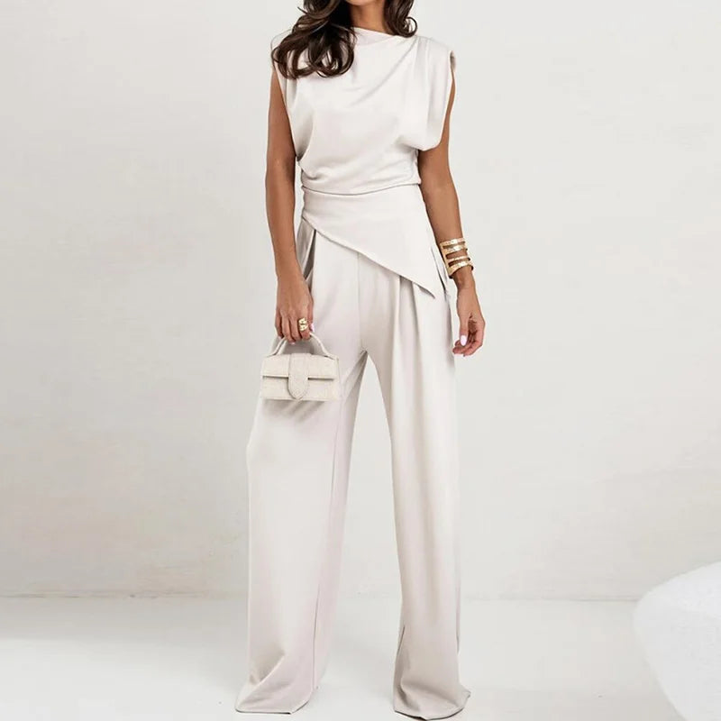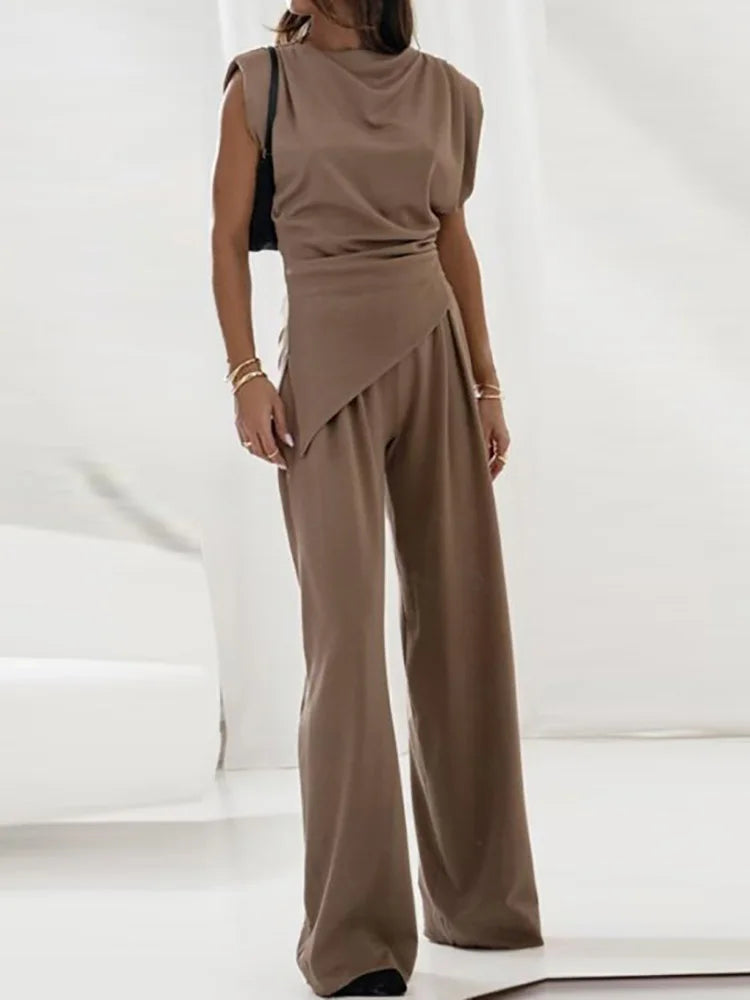 Entdecken Sie das perfekte Sommeroutfit mit unserem chicen, ärmellosen Set. Die Weitbeinhosen und das o-Hals Pullover Top sind ideal für entspannte Tage und Urlaubsabenteuer. Das stilvolle Patchwork-Design verleiht dem Ensemble eine moderne Note, während die bequeme Passform für ein angenehmes Tragegefühl sorgt.