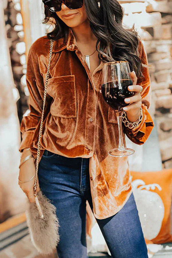 Bryen® | Samtbluse mit Knopfverschluss und Taschen