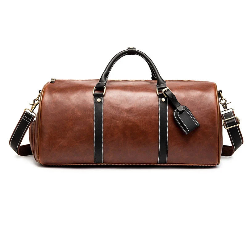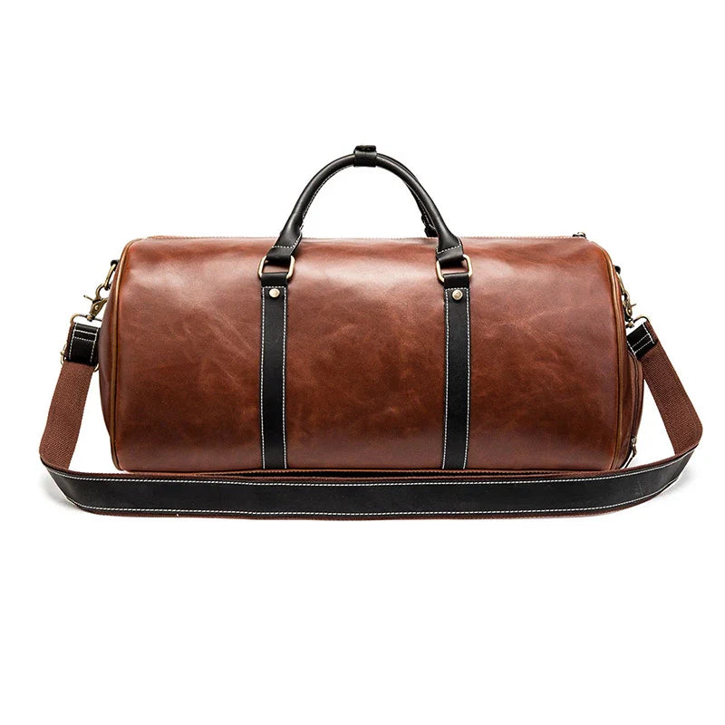 Unser Leder Sporttasche hat genug Platz, um dich auf einer längeren Reise zu begleiten. Sein großes Volumen, drei Taschen und das integrierte Schuhfach bieten dir viel Platz, um dein Gepäck zu verstauen.