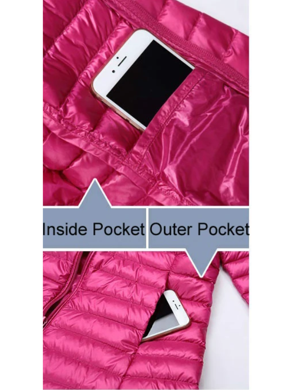 Genießen Sie Eleganz und Bequemlichkeit mit der Damen Daunenjacke – einer leichtgewichtigen, faltbaren Jacke mit Kapuze, die dafür sorgt, dass Sie warm bleiben, ohne auf Tragbarkeit zu verzichten. Diese vielseitige Jacke eignet sich hervorragend für unterwegs, da sie einfach zusammengefaltet und in Ihrer Tasche verstaut werden kann. Durch die Verwendung hochwertiger Materialien und das durchdachte Design bietet diese Jacke eine hervorragende Kombination aus Funktionalität und Stil.