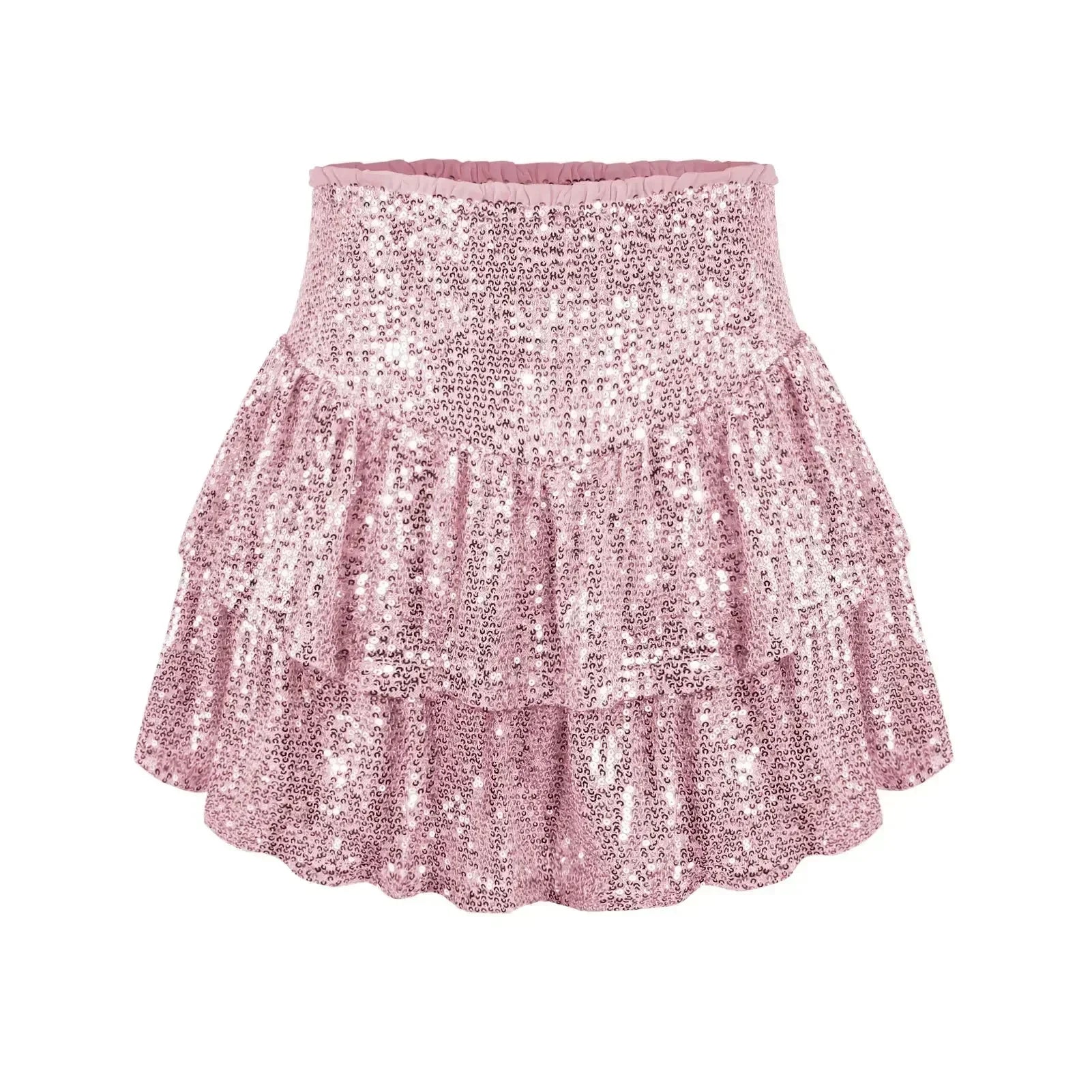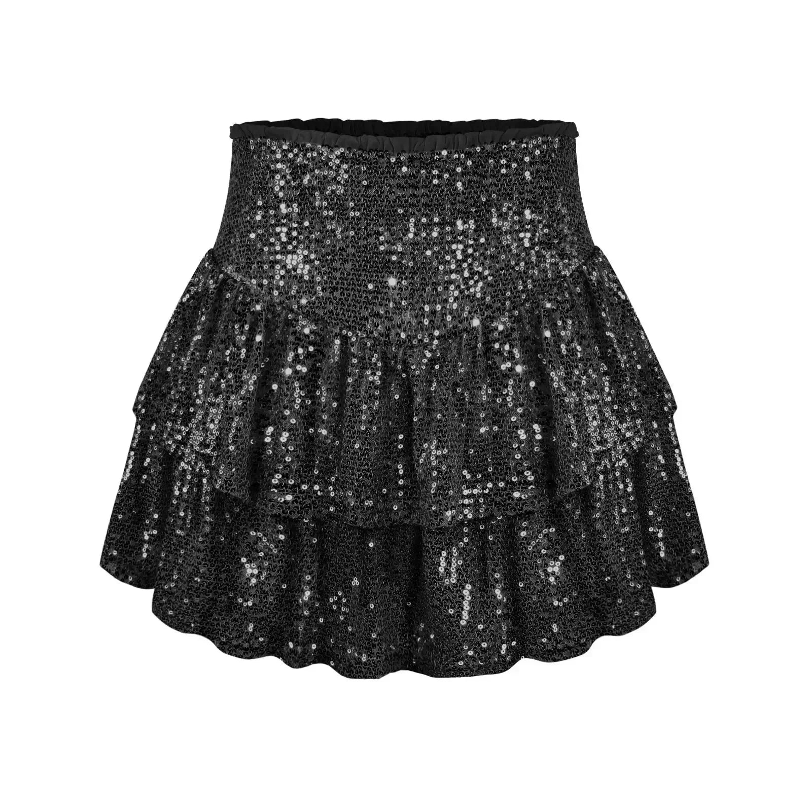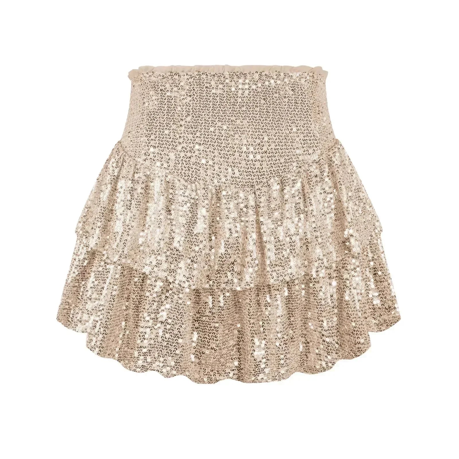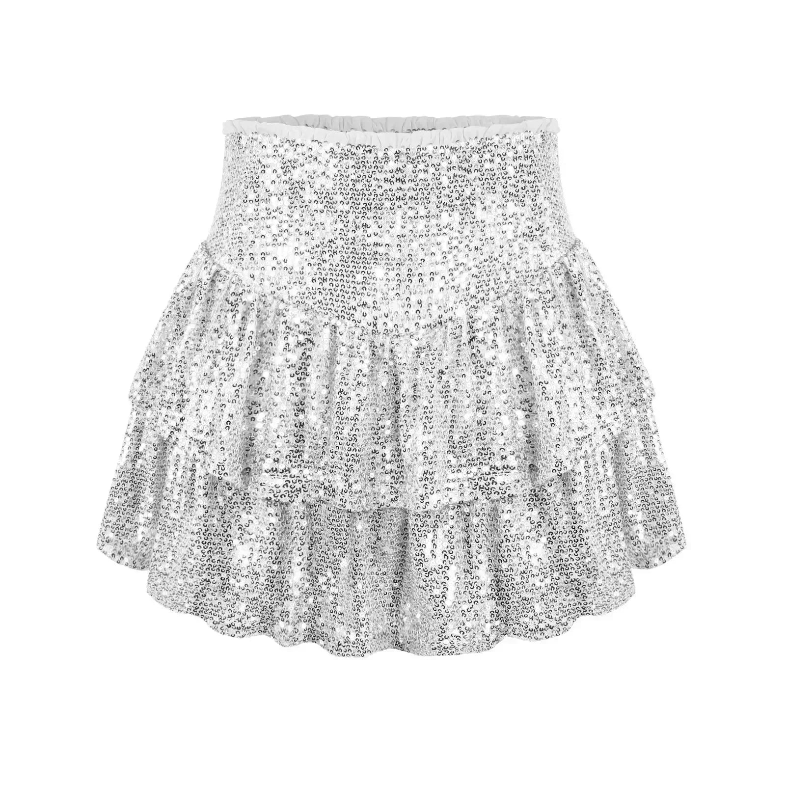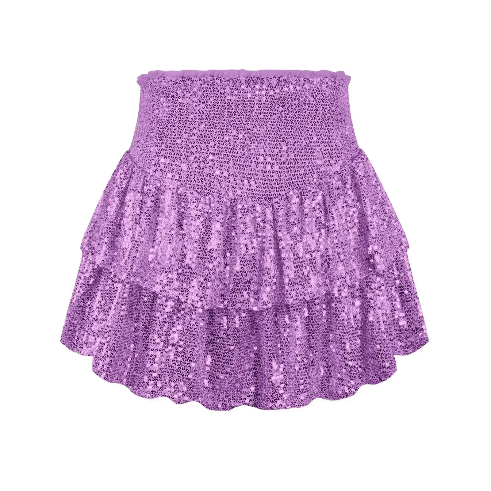 Dieser Damen-Minirock ist für den Sommer konzipiert und endet oberhalb des Knies. Der Rock verfügt über ein Stufendesign mit zwei Lagen Rüschen, die durch sichtbare Stofflagen eine strukturierte Oberfläche erzeugen. Hergestellt aus glänzendem Material, besitzt die Oberfläche ein reflektierendes Finish. Die leichte Verarbeitung eignet sich für das Tragen bei höheren Temperaturen.
