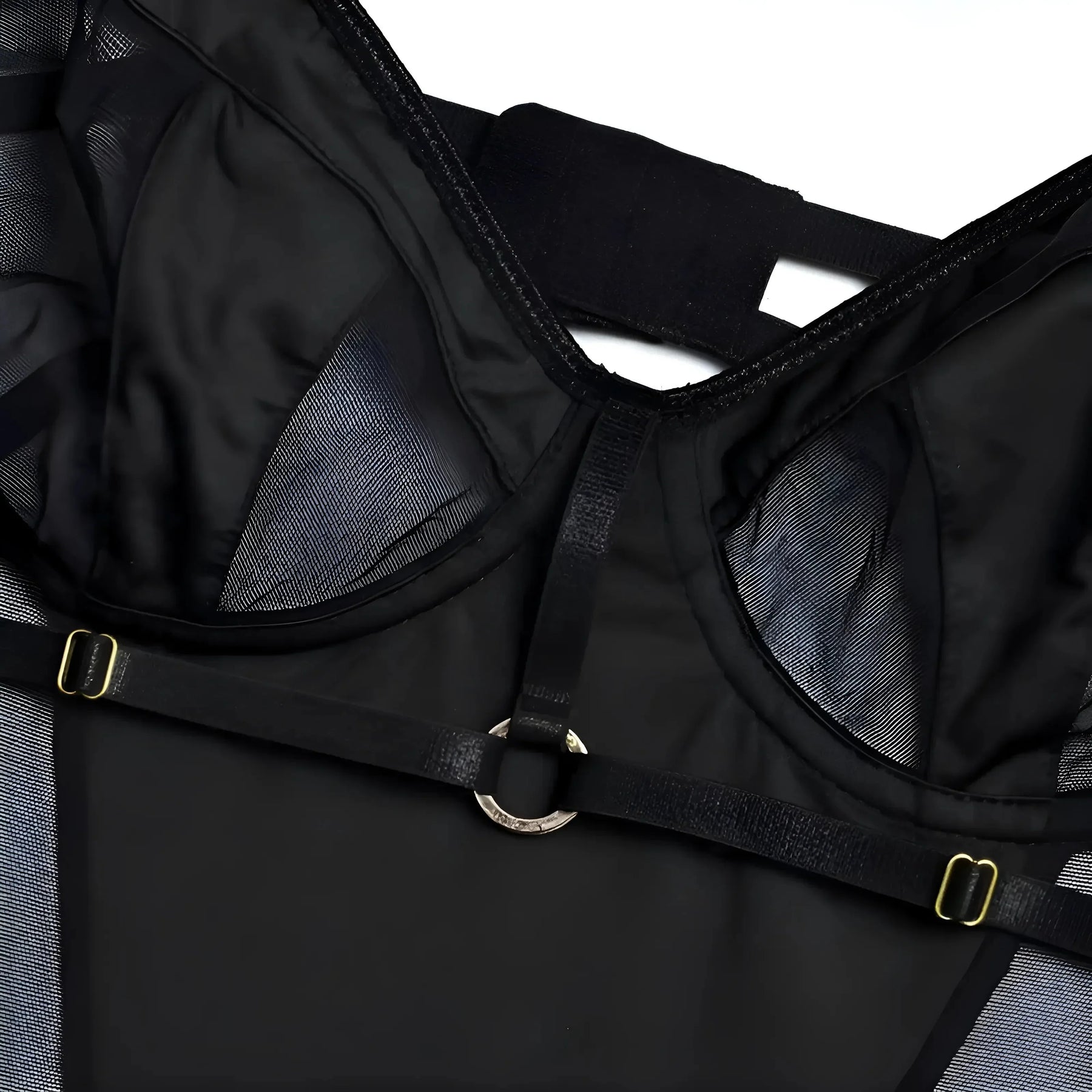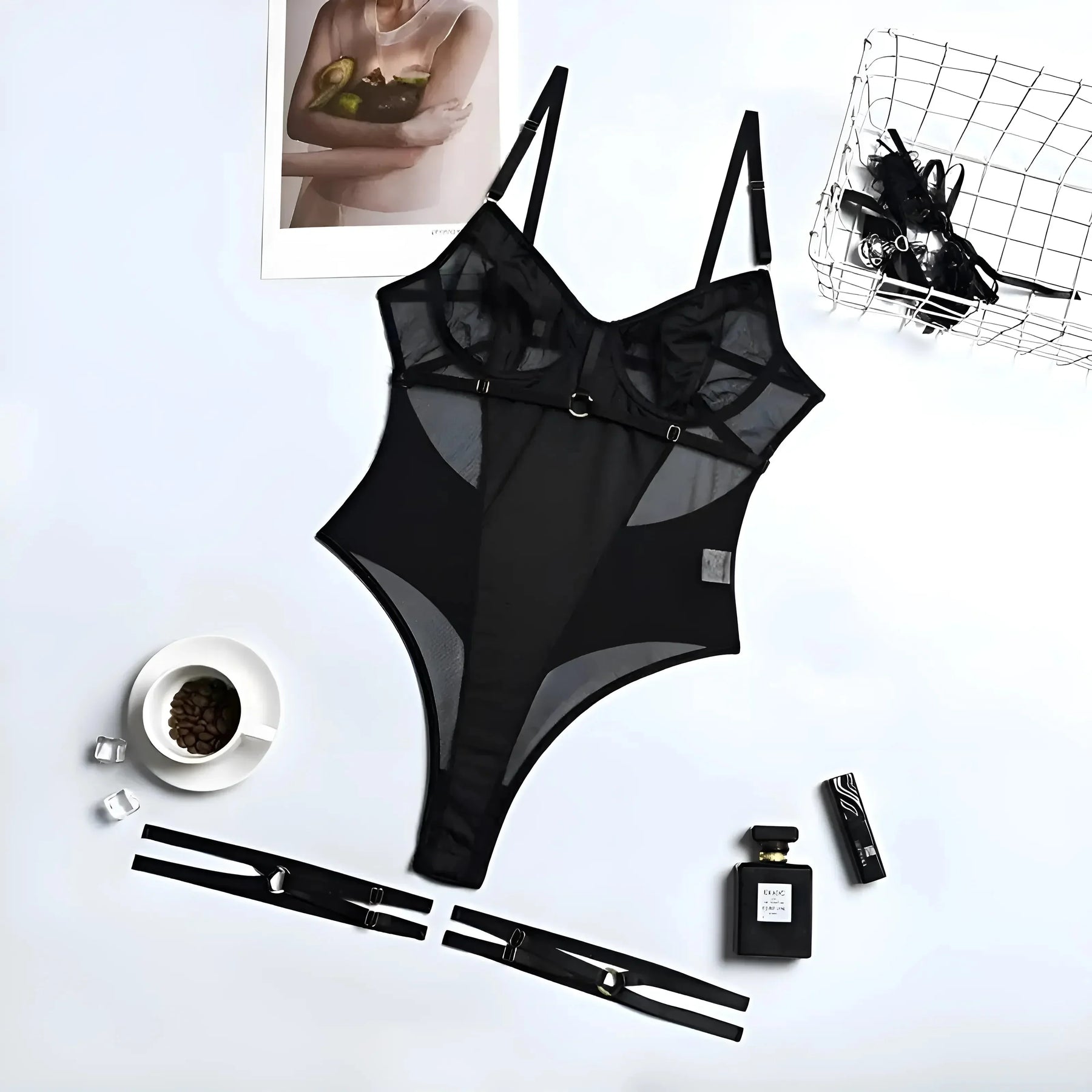 Entdecken Sie Ihr Selbstvertrauen mit unserem beeindruckenden Bodysuit, der durchsichtige Akzente und ein Trägerdesign bietet, das Ihre Silhouette vorteilhaft betont. Erhältlich in strahlendem Schwarz und Rot, ist es an der Zeit, Ihrer Garderobe einen frischen Kick zu geben und überall Aufmerksamkeit zu erregen!