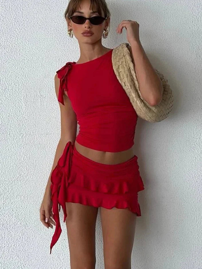 Eike | Zweiteiler Rock Set mit Falten und Quasten