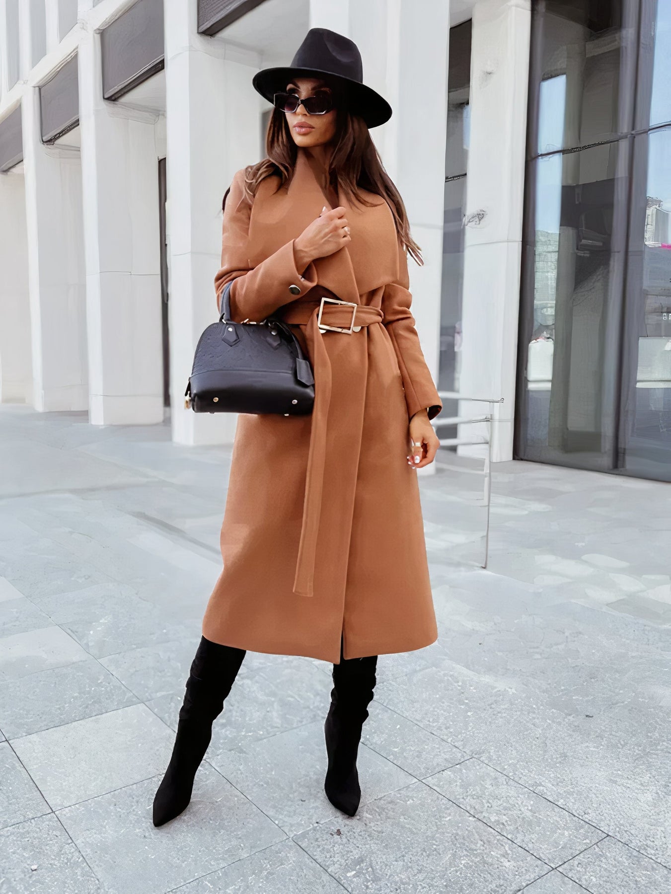 Der Gisele-Mantel verleiht Ihrer Garderobe Eleganz und Raffinesse und ist perfekt für Frauen, die klassische, maßgeschneiderte Oberbekleidung schätzen. Dieser lange Mantel aus einer luxuriösen Wollmischung verfügt über einen schmeichelhaften Gürtel, der die Taille betont, Ihre Silhouette verbessert und Sie gleichzeitig warm hält. Mit seinen klaren Linien und seinem zeitlosen Design eignet er sich sowohl für formelle als auch für legere Anlässe.