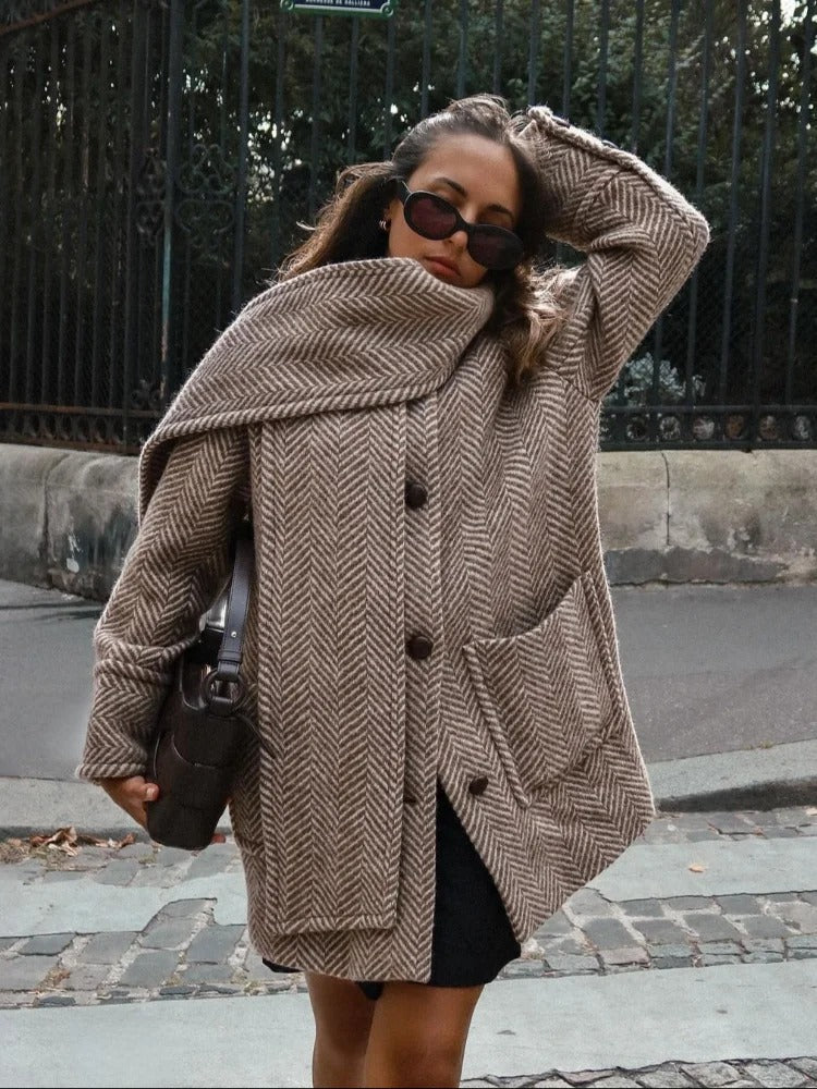 Eleganter Retro-Mantel Gestreifter Schal Kragen Wolljacke