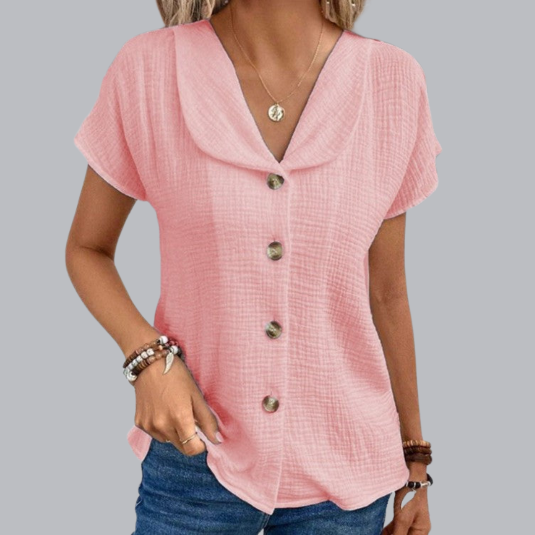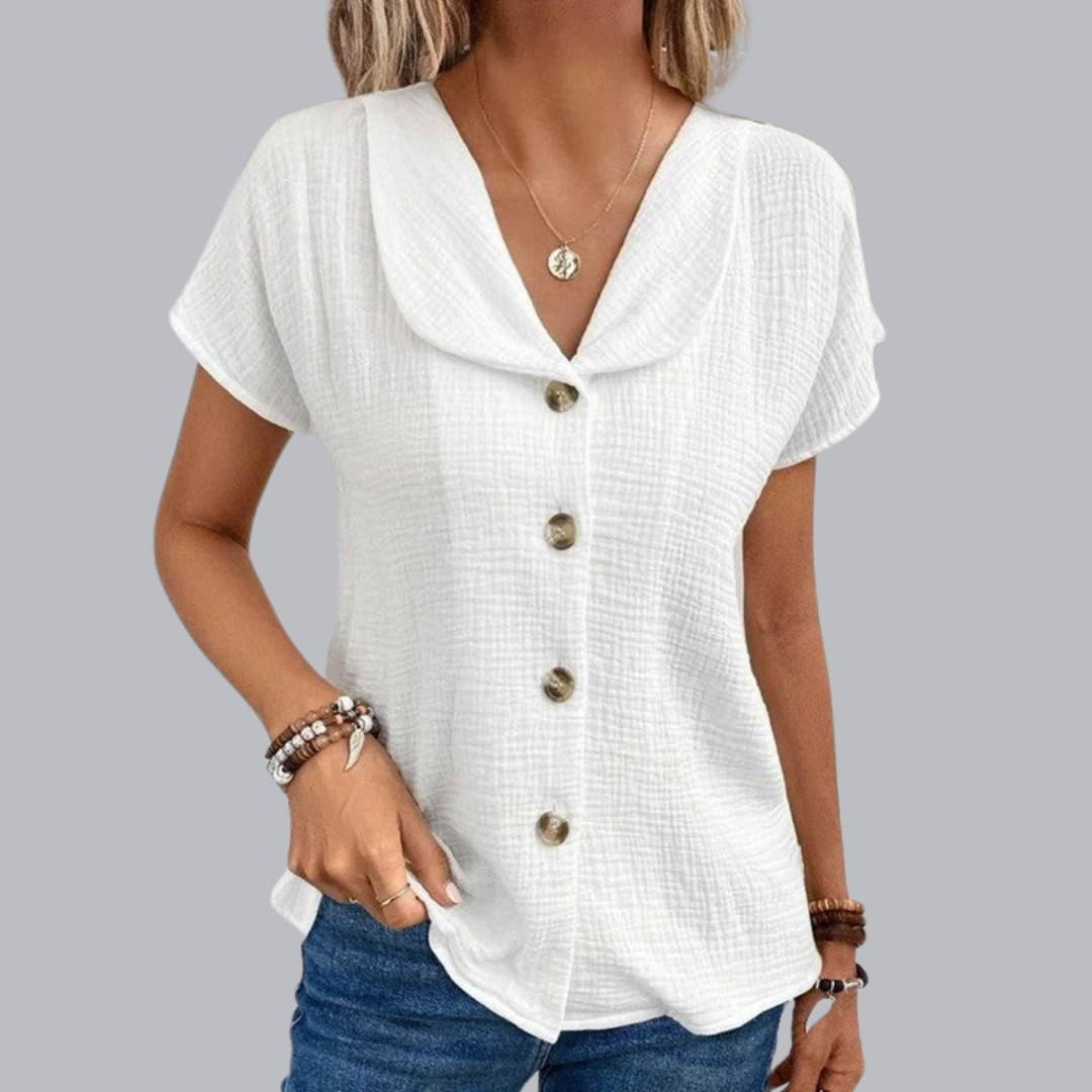 Entdecken Sie unser beliebtes Ellen-Top mit Kragen und Knöpfen – der perfekte Begleiter für jeden Anlass! Mit einem zeitlosen Design, das Komfort und Stil vereint, wird dieses Top schnell zu Ihrem neuen Lieblingsstück. Egal, ob beim Brunch mit Freunden oder im Büro, Ellen sorgt dafür, dass Sie stets elegant und entspannt auftreten.