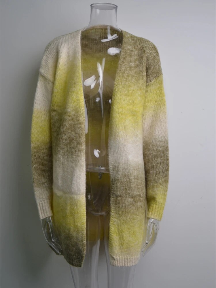 Gefärbter langer lockerer Strickmantel mit Taschen