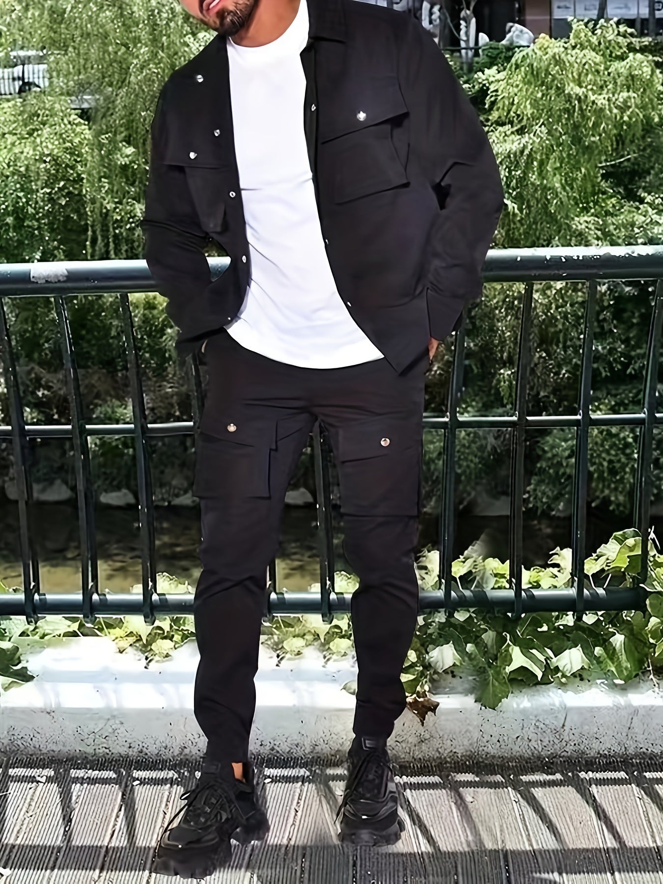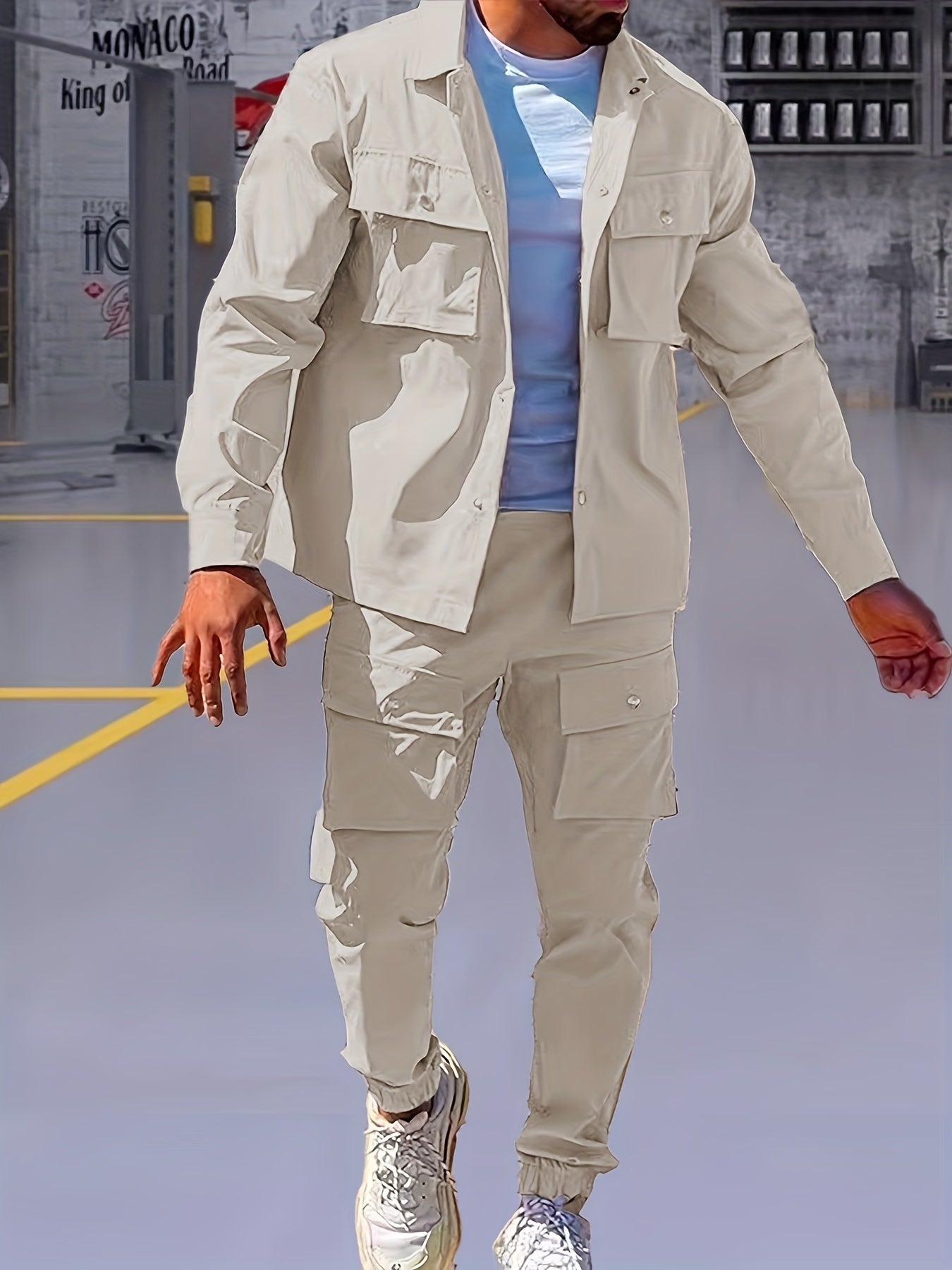 Lässiger Langarm Trainingsanzug mit Reissverschluss, Brusttaschen und Kordelzughose für Herren | Perfekt für Outdoor-Aktivitäten