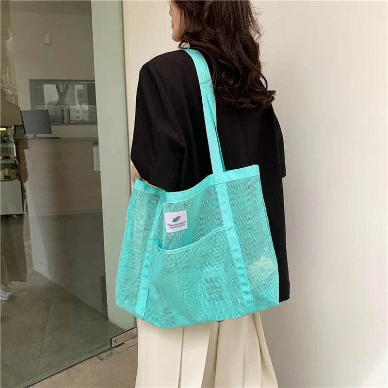 Entdecken Sie die perfekte Kombination aus Stil und Funktionalität mit der Mira Umhängetasche aus transparentem Mesh. Diese modische Tasche ist ideal für den Strand, das Einkaufen oder als trendiges Accessoire für Ihre Reisen. Ihr leichtes und tragbares Design macht sie zum perfekten Begleiter für jede Gelegenheit.