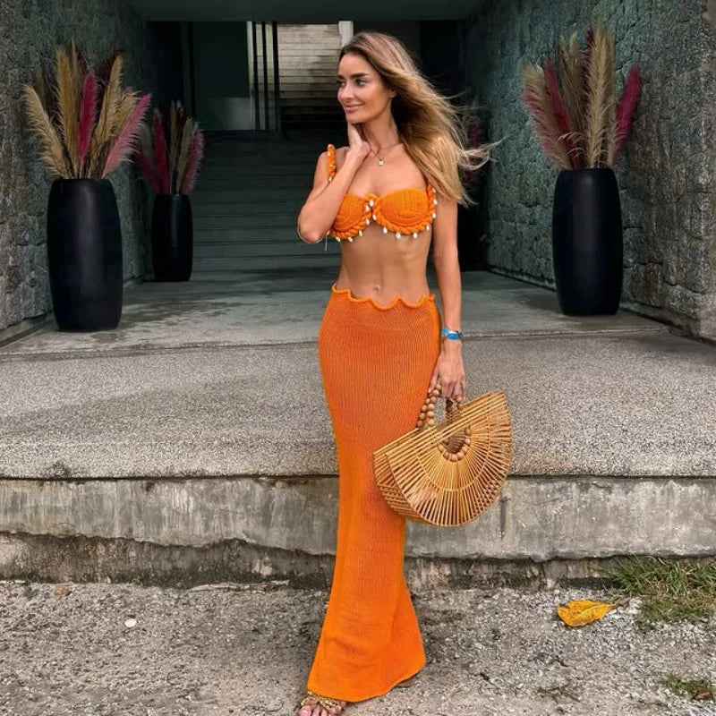 Dieses stilvolle Perlenhalter Bikini Set mit Minirock ist die perfekte Wahl für modebewusste Frauen, die am Strand oder am Pool auffallen möchten. Das gehäkelte Design verleiht dem Outfit eine einzigartige Note und sorgt für einen trendigen Look, der sowohl sexy als auch elegant ist.