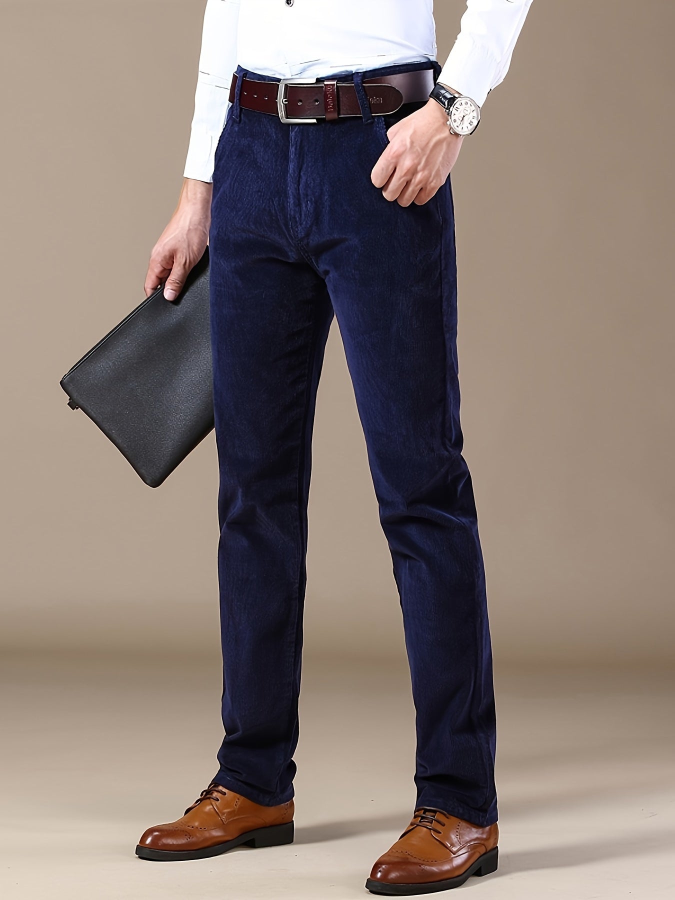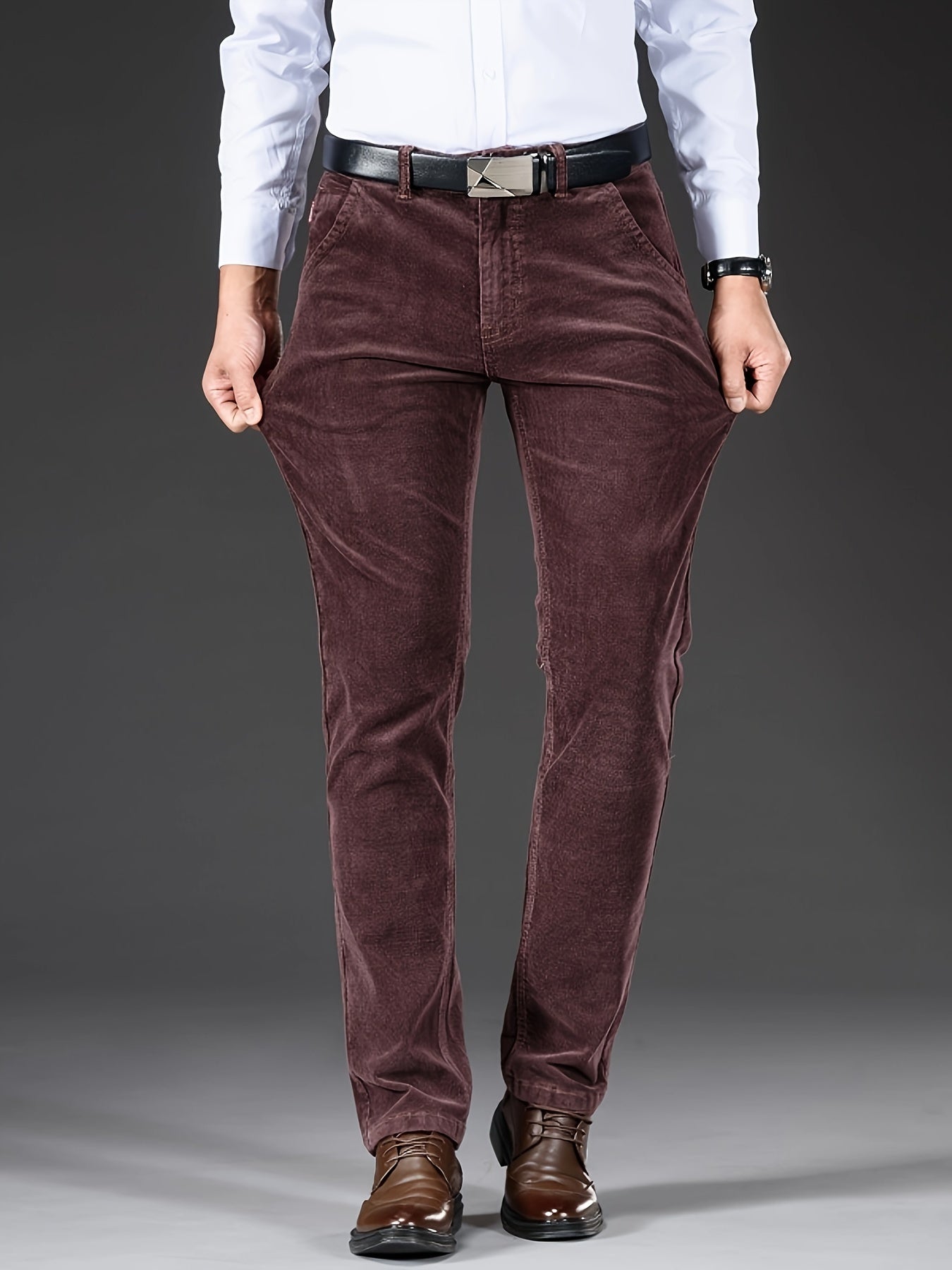Die Samuel-Cordhose kombiniert zeitlosen Stil mit modernem Komfort. Diese Hose aus weichem, strapazierfähigem Rippensamt ist eine warme und stilvolle Option für formelle und legere Anlässe. Die klassische Passform und die reiche Textur machen sie zu einem vielseitigen Kleidungsstück, das sich sowohl mit Hemden als auch mit Pullovern kombinieren lässt. Perfekt für den stilvollen Mann, der einen klassischen, raffinierten Look liebt.
