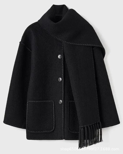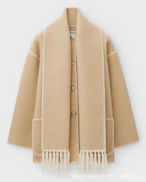 Mit unserem Wollmantel sind Sie bestens gerüstet für die kalten Tage. Der elegant geschnittene Mantel mit dekorativen Fransen und einem Schal wird Ihre Garderobe in dieser Saison bereichern.