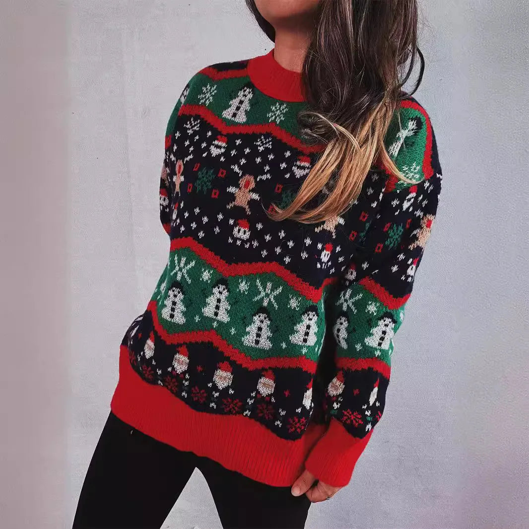 Teresa - Übergroßer Strickpullover mit Rundhalsausschnitt und Weihnachtsprint für Frauen